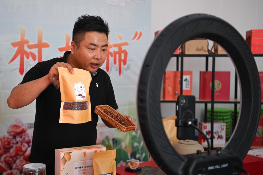 “富平是世界闻名的柿子优生区,用我们的柿子加工而成的柿饼,不仅个大、霜白,而且产量大、味道甜。”富平县庄里试验区杨家村党支部书记、村委会主任乔彬彬介绍,这里的柿子虽好,但酒香也怕巷子深。长期以来,传统的销售模式让柿饼难以大批量走出富平,为了带领群众实现致富梦,多年前,他成为当地首个通过网络销售柿子产品的“吃螃蟹的人”。